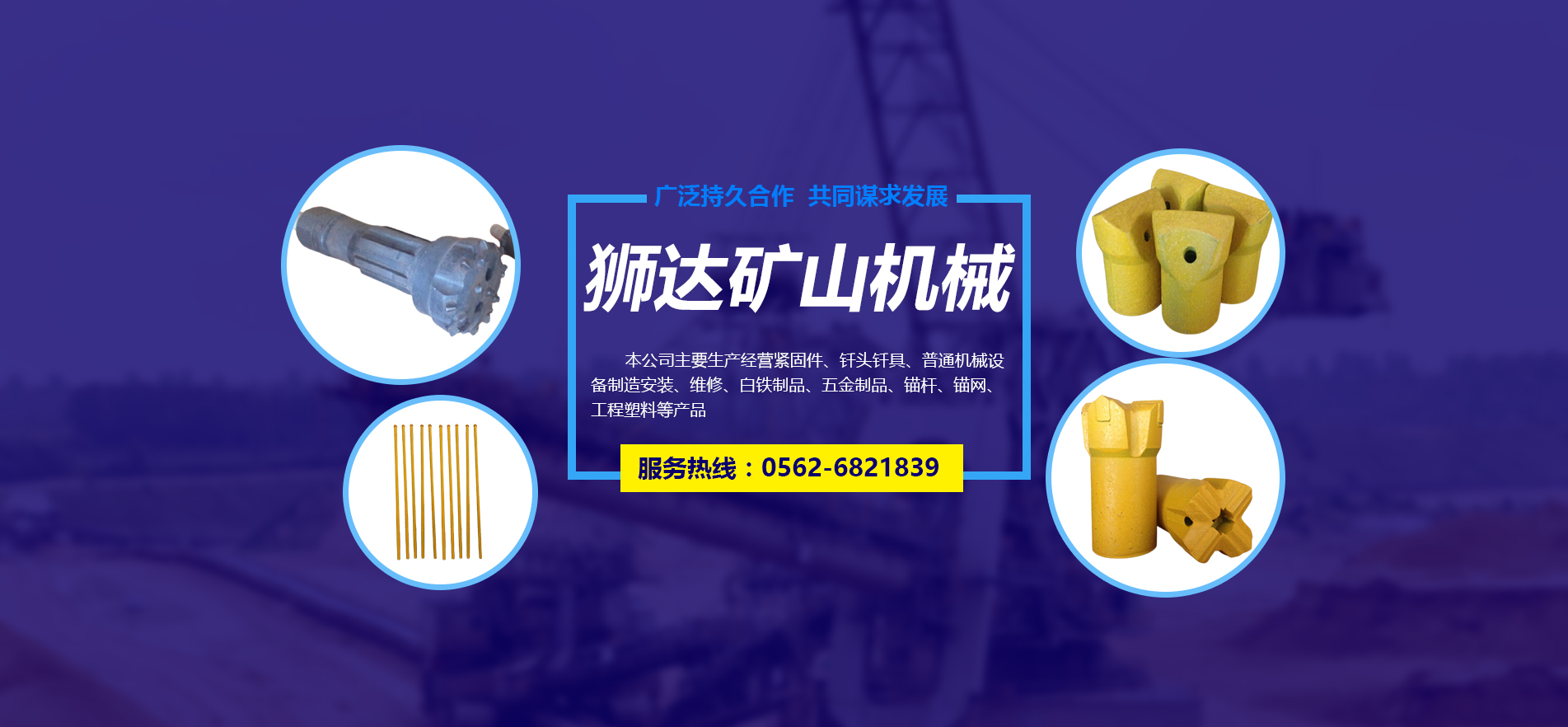 銅陵獅達(dá)礦山機(jī)械有限公司成立于2006年5月,公司位于安徽省銅陵市獅子山冬瓜山銅礦境內(nèi)。主要生產(chǎn)經(jīng)營(yíng)緊固件、釬頭釬具、普通機(jī)械設(shè)備制造安裝、維修、白鐵制品、五金制品、錨桿、錨網(wǎng)、工程塑料等產(chǎn)品。
